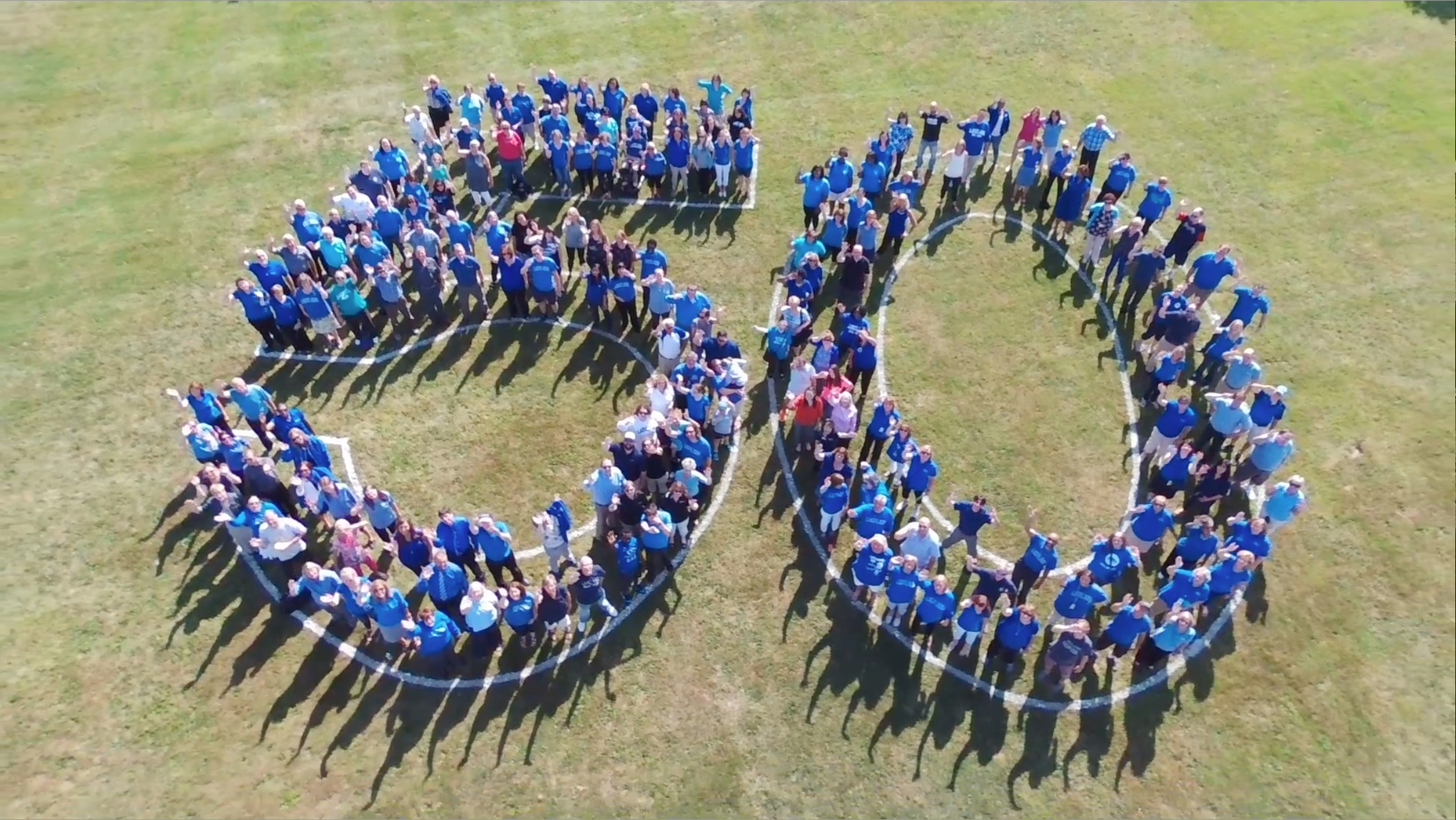 Students, employees and community members made Lakeland history with a 50th anniversary birthday photo from an aerial drone! Over 200 participants stood to form the number 50 in the field behind the tennis courts, wearing blue to show their appreciation for Lakeland.